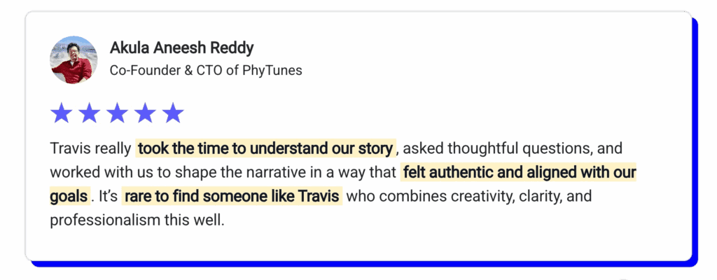 A done-for-you narrative system embedded inside your startup — designed to turn your people, product, and customers into marketing and sales content.